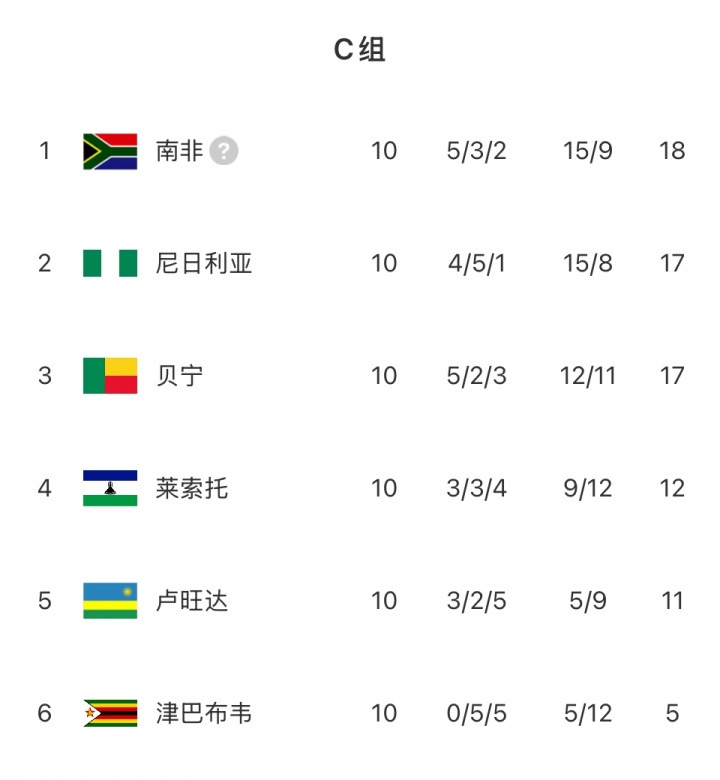 而在这轮之前,贝宁还是C组第一名并领先南非2分,而最后一轮南非获得直通,尼日利亚排名第二已经确定为四支成绩最好的小组第二,进入附加赛,贝宁则直接无缘世界杯。