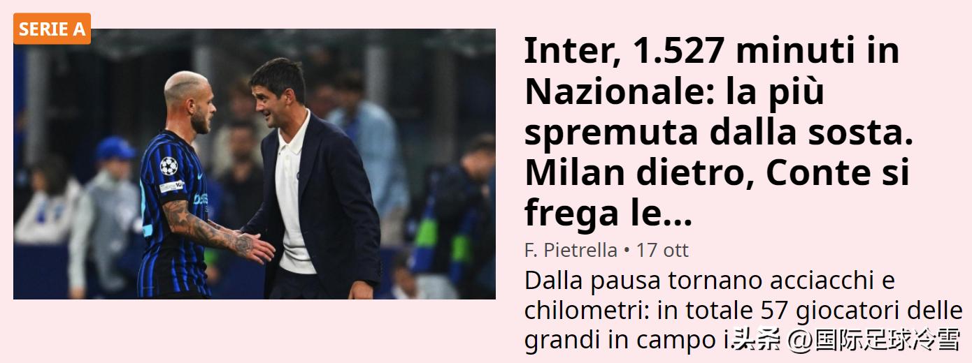 但这次国家队比赛日后,意媒盘点“FIFA病毒”对意甲争冠五强的影响时指出:五强都受到影响,其中,米兰双雄代价最为惨痛,这会让两队都在接下来几周遭遇考验