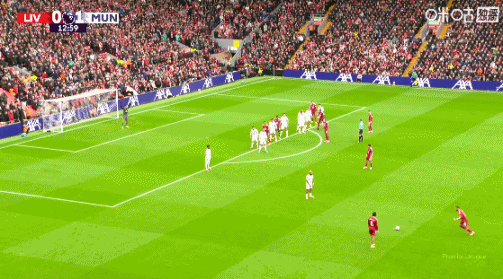 第14分钟,利物浦前场任意球机会,萨拉赫将球送入禁区,后点范迪克鱼跃头球攻门,顶偏了。↓