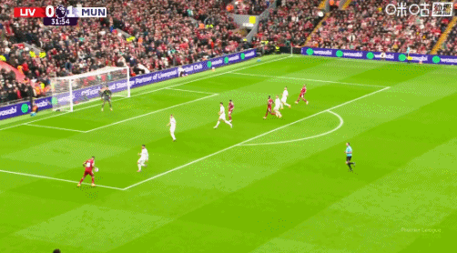 第32分钟,利物浦反击,加克波得球突入禁区小角度似传似射直接击中后门柱弹出。↓