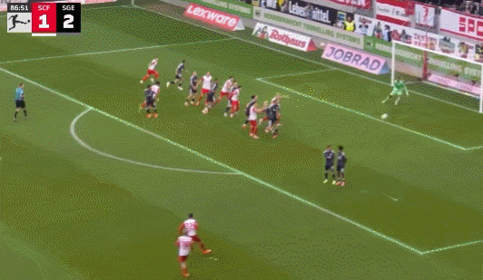 直播吧10月20日讯 弗赖堡2-2战平法兰克福,弗赖堡前锋格里福打入直接任意球。