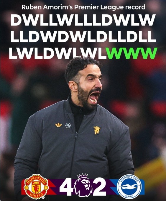 起势了!阿莫林前33场英超未能取得过连胜,如今斩获三连胜