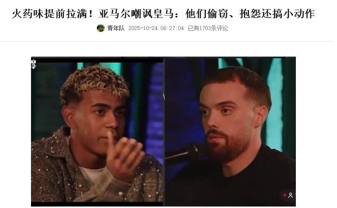 赛前,亚马尔嘲讽皇马:他们偷窃、抱怨还搞小动作,该言论引发皇马方面强烈不满,比赛开始前已经酝酿不满情绪