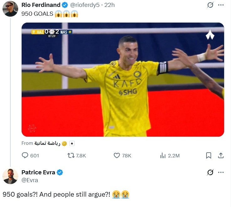 C罗950球!费迪南德感叹C罗进球数,埃弗拉:竟然还有人在争论?