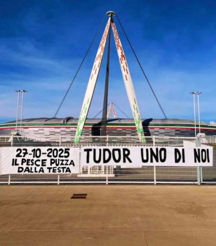 直播吧10月28日讯 在尤文主教练图多尔被解雇后,俱乐部部分球迷立即采取了抗议行动。球迷们在主场外挂出了措辞强硬的横幅,将矛头直指俱乐部高层。