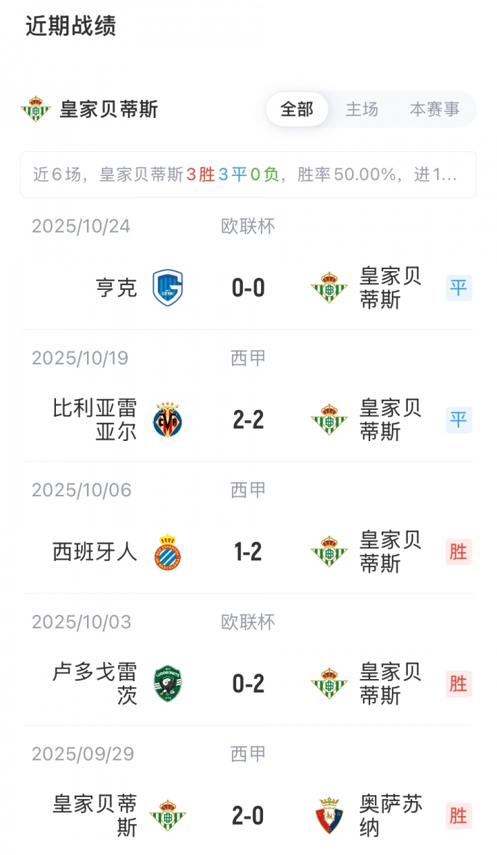 皇家贝蒂斯首发:25-保·洛佩斯、2-贝莱林、4-纳坦、5-巴尔特拉、12-R罗、8-福纳尔斯、14-阿姆拉巴特、21-罗卡、7-安东尼、10-阿布德、19-库乔